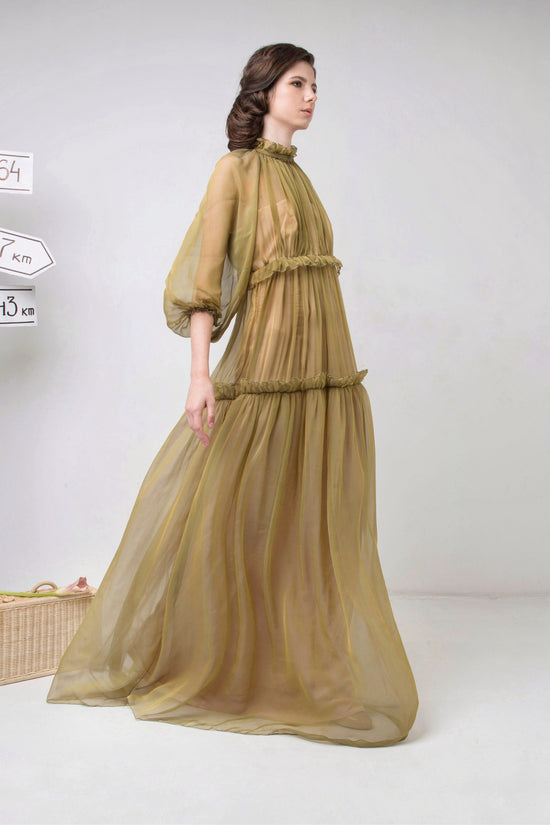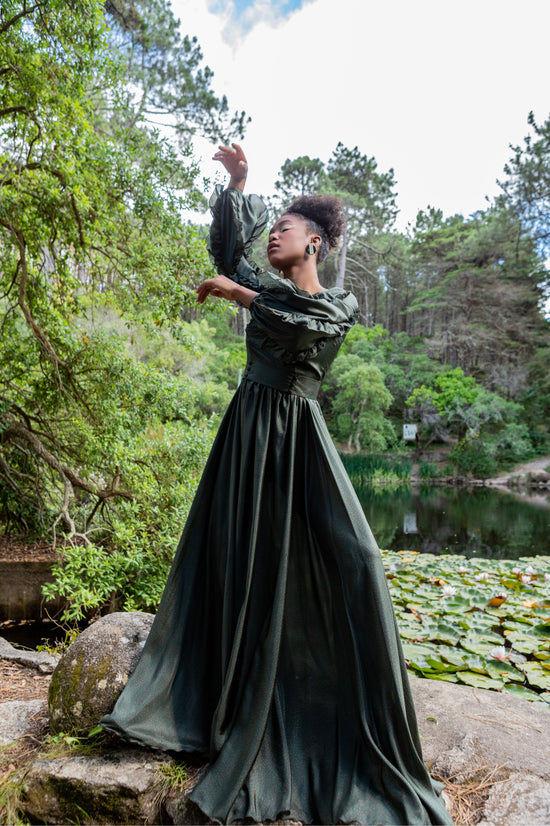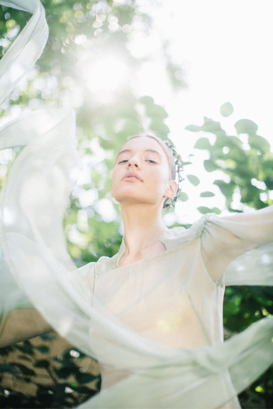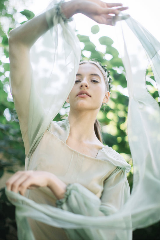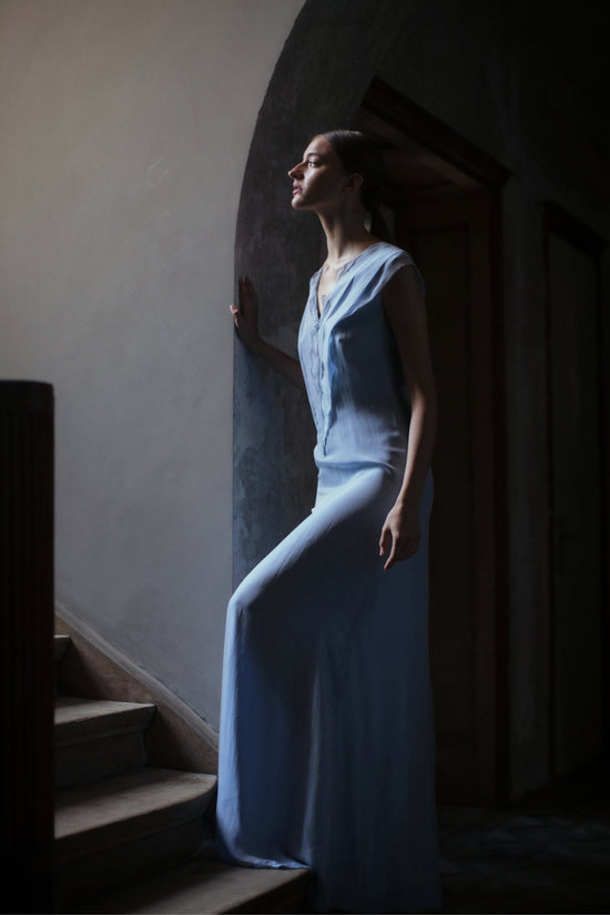 The color palette of Daniela varies from classic black, white, and cream colors to noble shades of green and blue. The materials also range from the most delicate fine silk to extravagant jacquard. Silk conveys a sense of femininity, oneirism, and fragility. It’s the fabric that has the main accent of the collection.