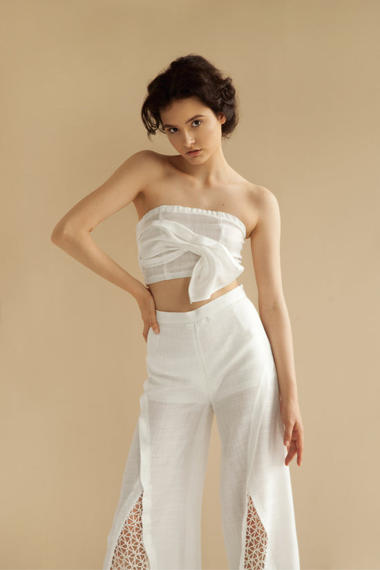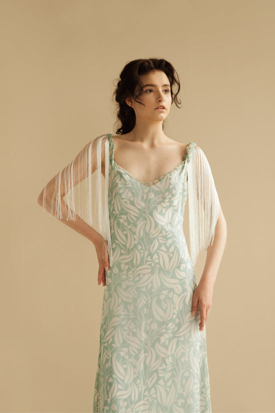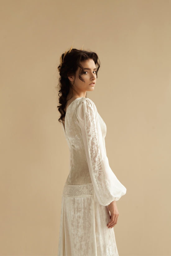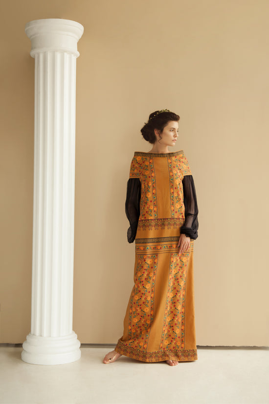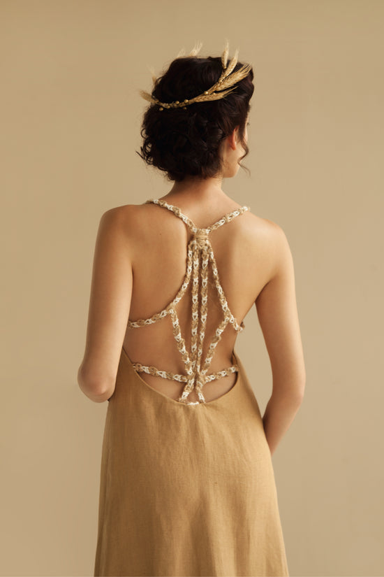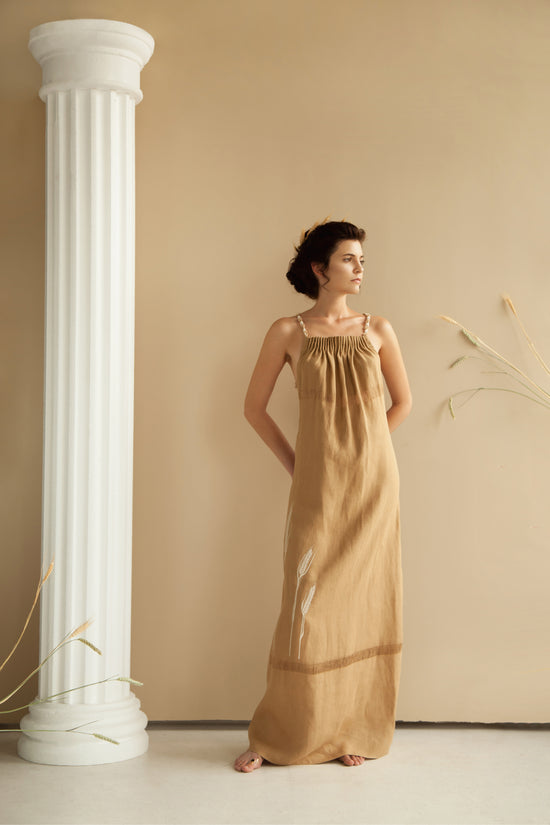 The decorative elements of the collection are an embroidered ear of wheat, which caught the eye of Maximus, who was returning to his native land. Beading, macrame, and thread embroidery techniques are used. The collection's gentle colors combine with the feminine character's romance and tenderness.