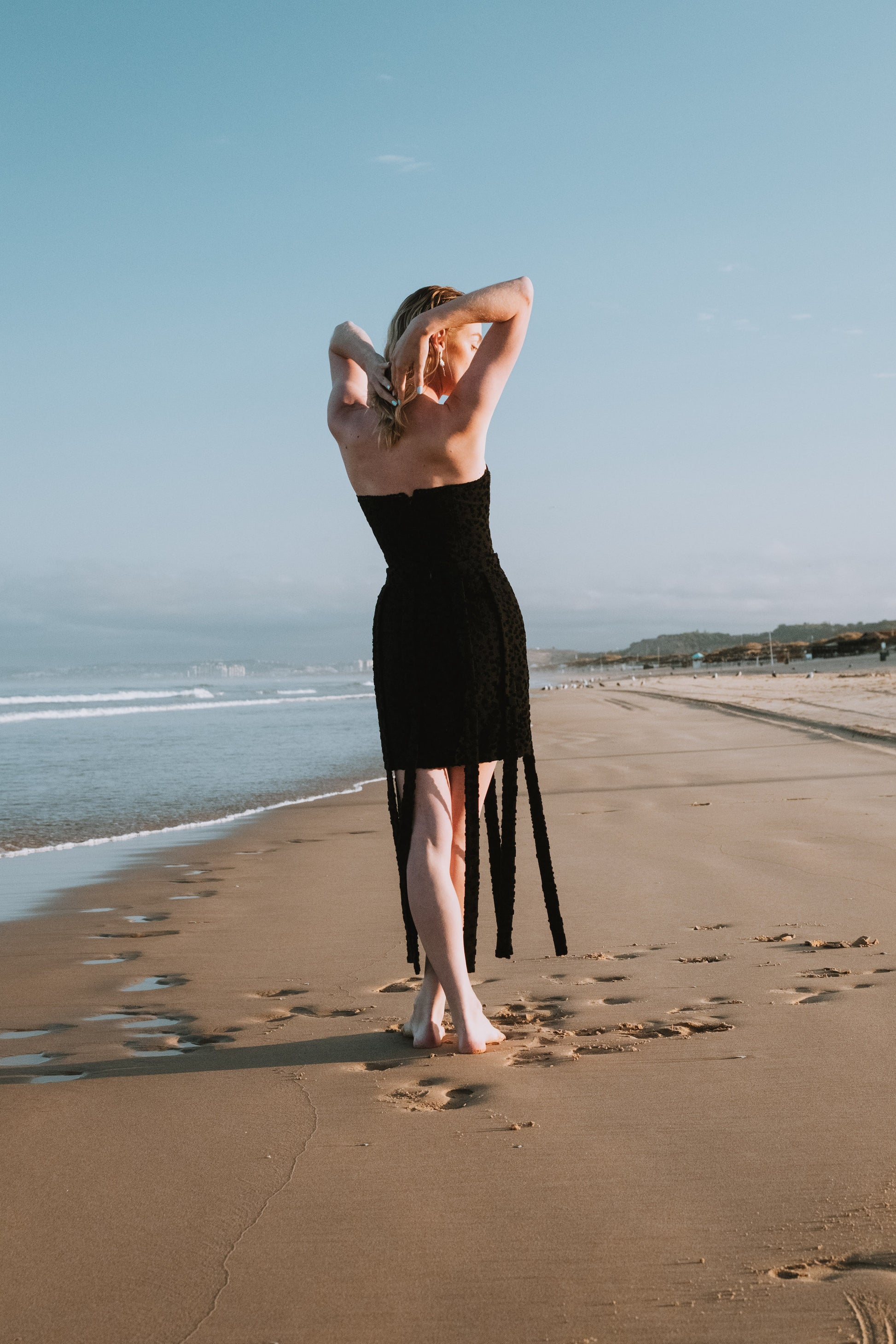 Introducing our exquisite Black Jacquard Bustier skirt, adorned with delicate polka dots for a timeless appeal.