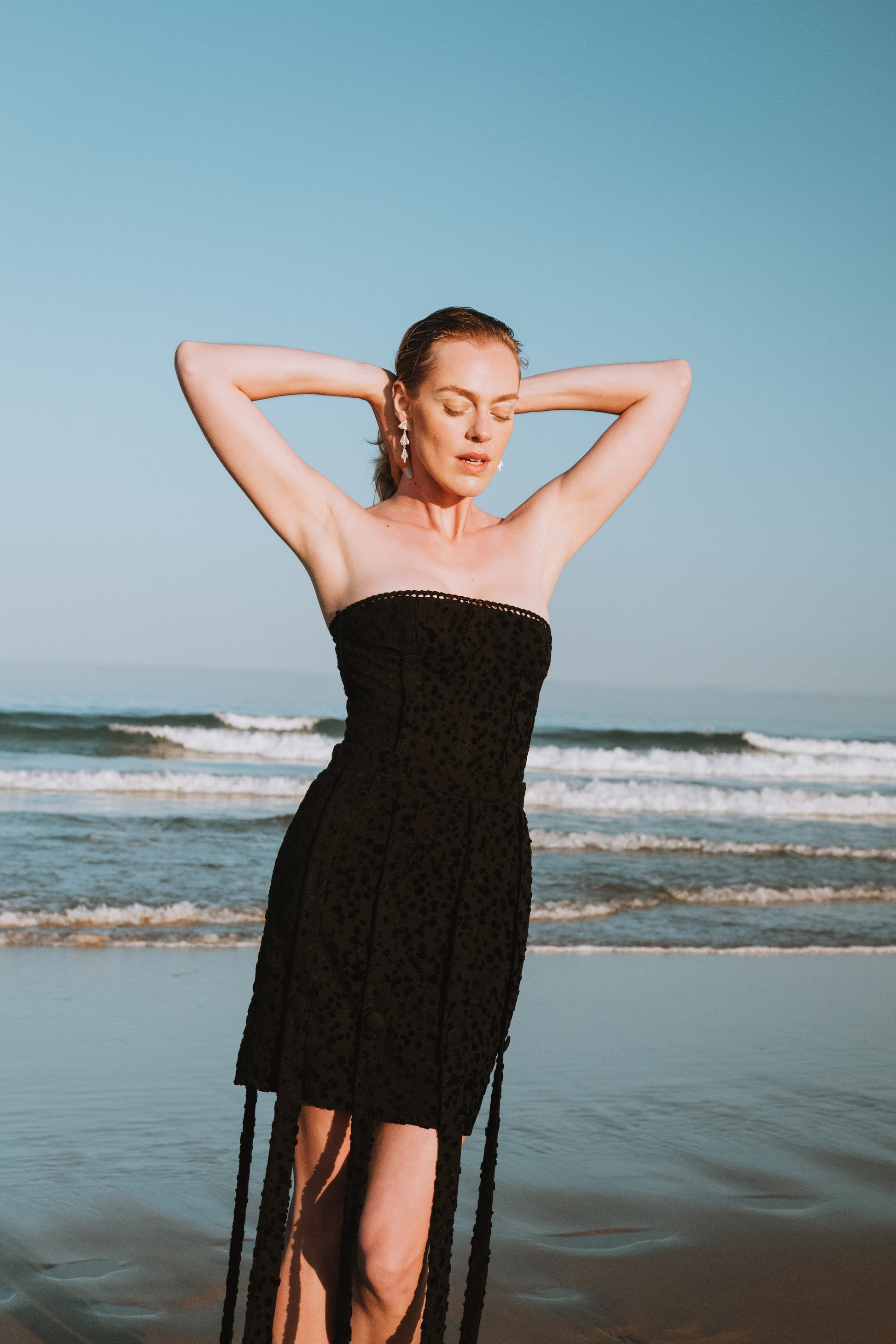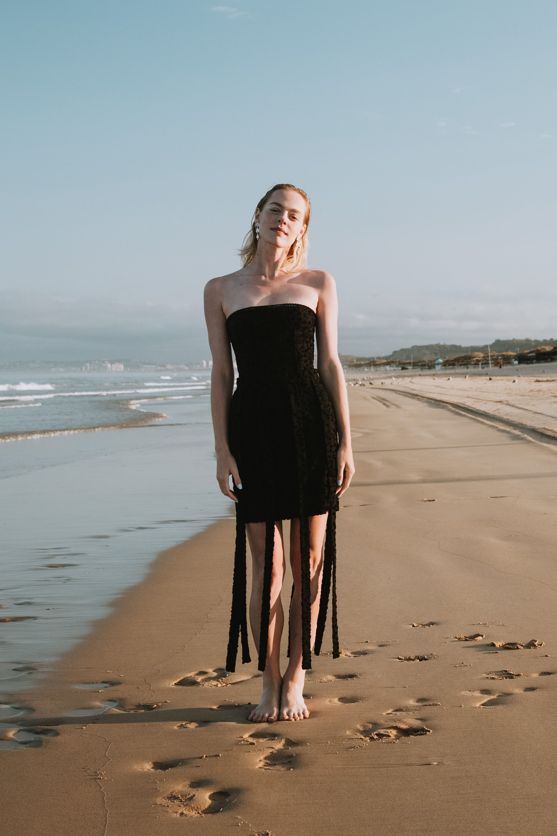 The skirt features intricate velvet macramé detailing, elevating its allure to a new level.