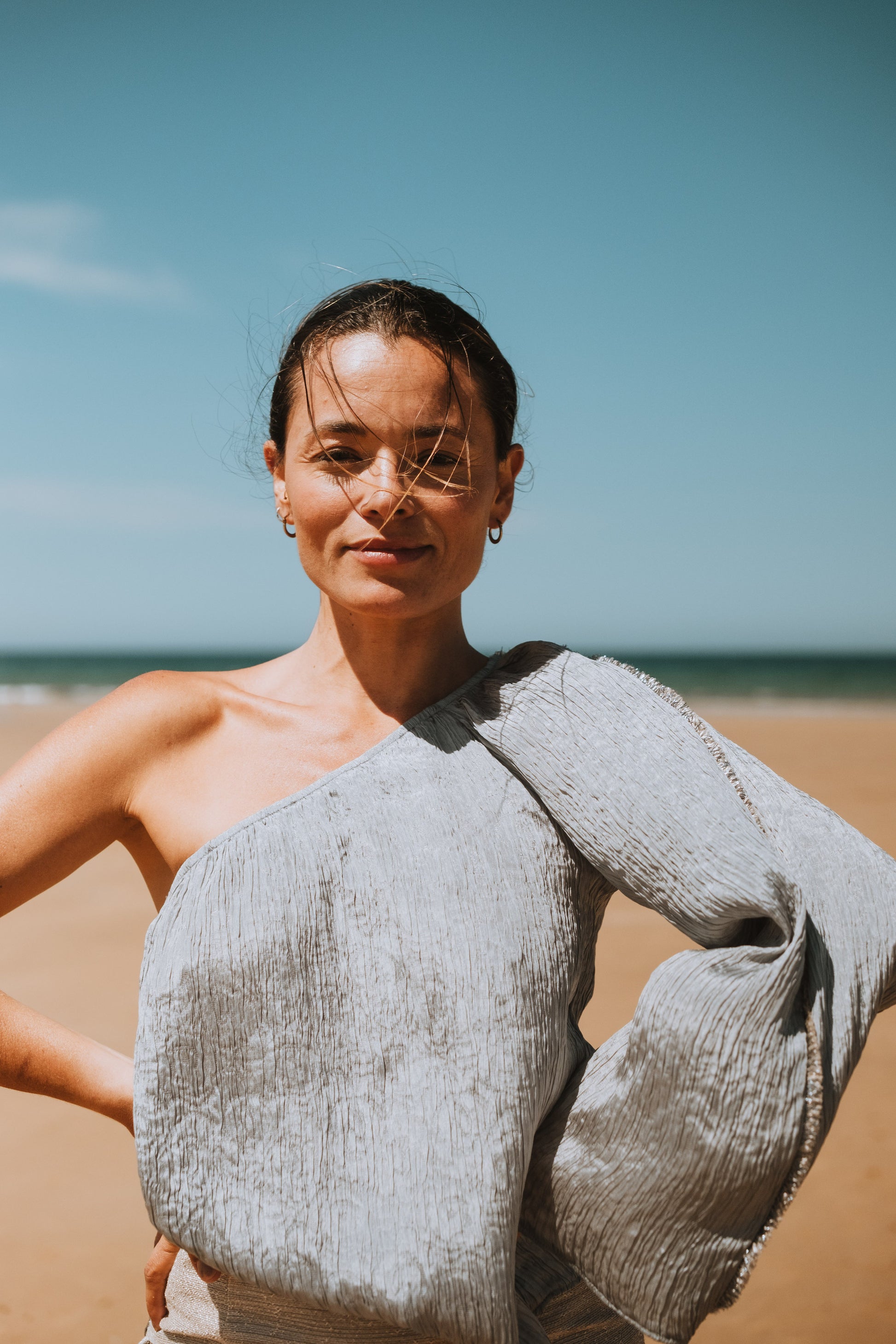Silk blouse exudes understated elegance with its gentle hue. Its versatile design makes it a perfect choice for both casual and formal occasions.