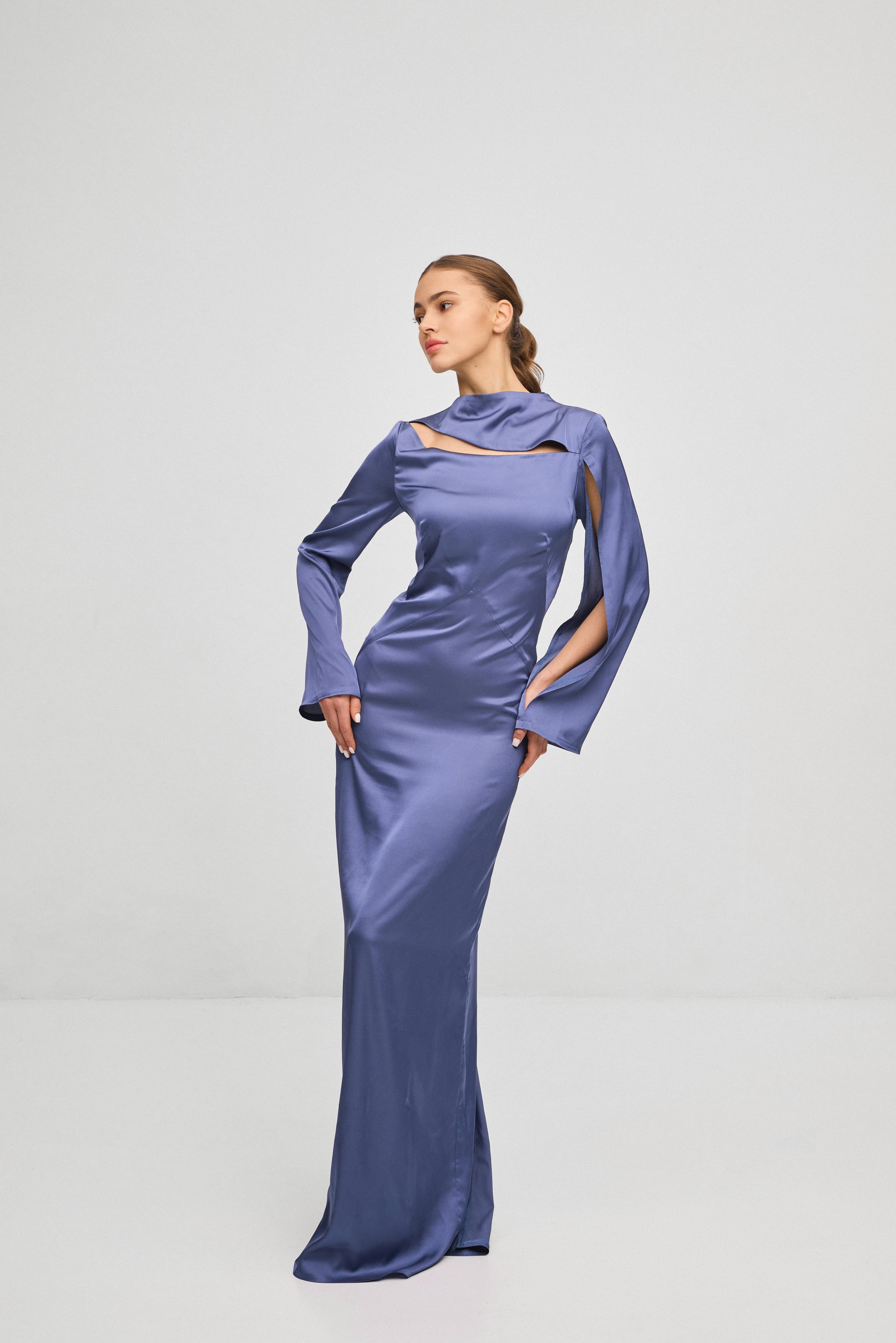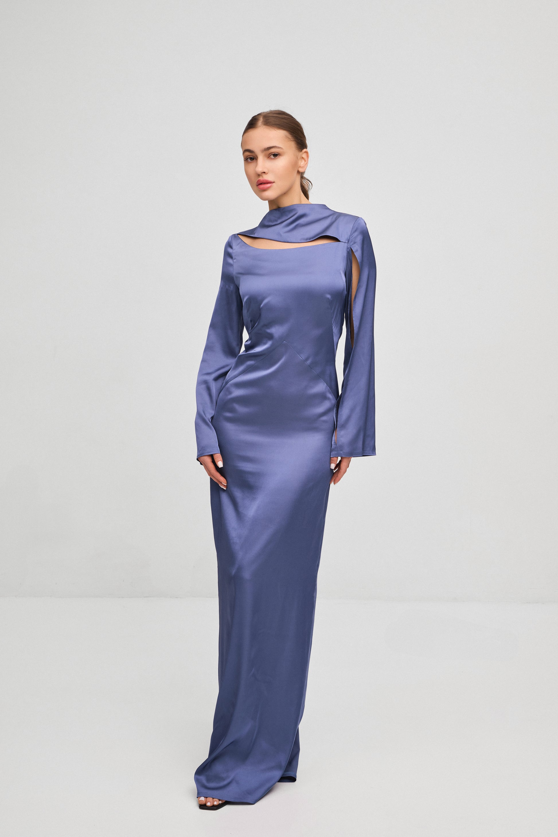 Elevate your wardrobe with our stunning Silk Maxi Dress, crafted from silk for an effortlessly elegant look. This chic dress with long sleeves add a touch of timeless refinement, while the eye-catching cutout detail at the chest lends a modern, bold flair. Designed with a flattering silhouette, this dress beautifully balances elegance and charm, ensuring you stand out at every gathering.
